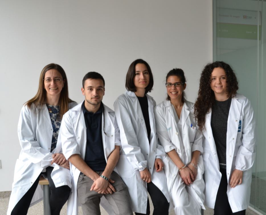 Sonia Hermoso (Becaria predoctoral PFIS), Laura Ceballos (técnico contratada con cargo a proyecto FIS), Violeta Morcuende (contratado pre-doctoral DGA), Alberto Rodrigo (especialista en oncología realizando la tesis doctoral), Ana Jiménez (contratada predoctoral DGA), David Ortega (contratado predoctoral FPI-MINECO)