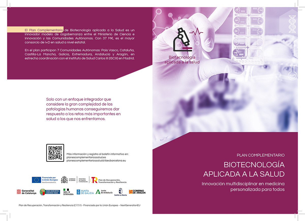 Contraportada del díptico con información sobre el Plan complementario en biotecnología aplicada a la salud