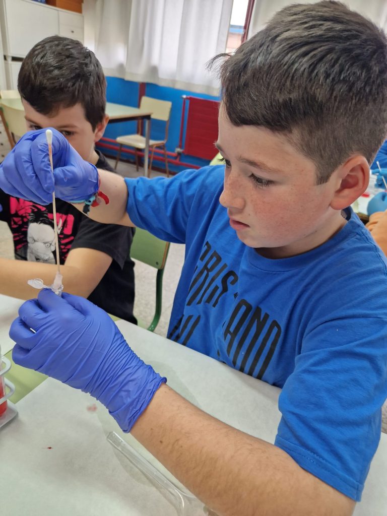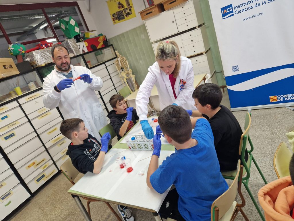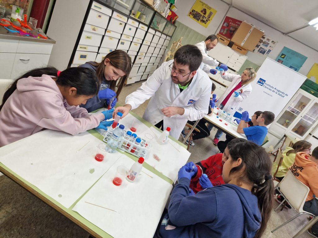 Zaragoza, 12 de febrero de 2024.-El Instituto Aragonés de Ciencias de la Salud se ha sumado, un año más, a la campaña para promocionar y visibilizar el papel que juega -y ha jugado- la mujer en la investigación científica. Las actividades coinciden con los actos que se celebran en toda España en torno al Día Internacional de la Mujer y la niña en la ciencia durante la semana del 11 de febrero. Más de un centenar de niños del último cursos de educación primaria de los colegios Eugenio López y López y Sansueña han podido experimentar cómo es el día a día de un científico del IACS, experimentando con elementos habituales en cualquier vivienda como jabón, alcohol o vinagre.