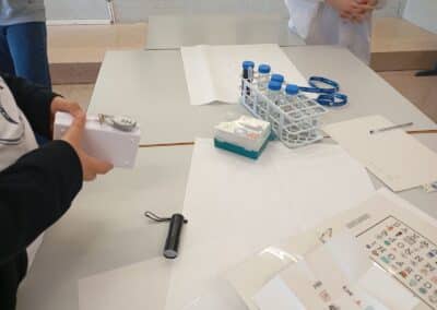 En la actividad, que ha contado también con tres estudiantes que están realizando sus prácticas en el IACS, los escolares han ido siguiendo las pistas para conseguir resolver un misterio en el laboratorio, a la vez que han ido adquiriendo conocimientos sobre biomedicina.