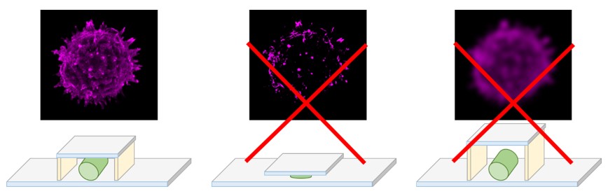 Zaragoza, 9 de octubre de 2023.- En la preparación de muestras para fluorescencia (inmunofluorescencia o marcaje con sondas) es fundamental preservar la estructura 3D de la muestra. Para ello, es esencial montar las muestras de forma adecuada, sin dejar espacio entre la muestra y el cubreobjetos, pero sin apretar.
