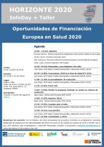 El Instituto Aragonés de Ciencias de la Salud (IACS) y el Instituto de Investigación Sanitaria de Aragón (IIS Aragón) junto con el Instituto de Salud Carlos III (ISCIII), organizan la Jornada Informativa+Taller de preparación de propuestas al SC1 de H2020: «Oportunidades de Financiación Europea en Salud 2020«. La jornada tendrá lugar el martes 22 de octubre, de 10h a 14.30h, en el salón de actos «Lorente de Nó» del CIBA (Avª San Juan Bosco 13).
