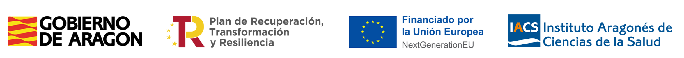 Logotipos Gobierno de Aragón, Plan de Recuperación, Transformación y Resiliencia, Financiado por la Unión Europea, Instituto Aragonés de Ciencias de la Salud