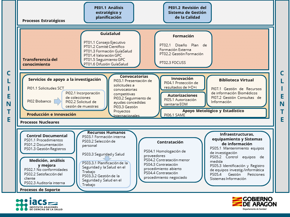 El IACS cuenta desde 2004 con un Sistema de Gestión de Calidad certificado según la norma internacional ISO 9001, con una gestión basada en procesos, en la búsqueda de la satisfacción de los clientes y en la promoción de la mejora continua.