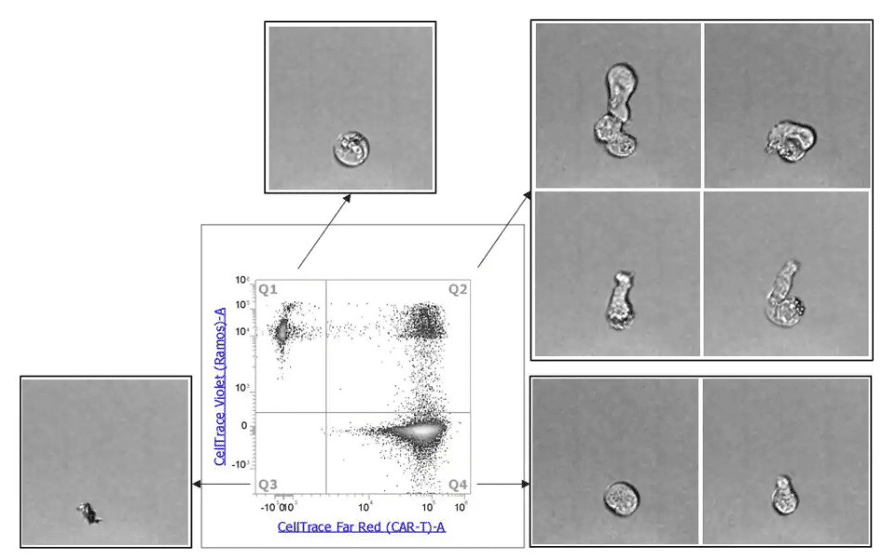 Análisis de interacción entre células CAR-T u una línea de células de Linfoma B en el Attune Cytpix.