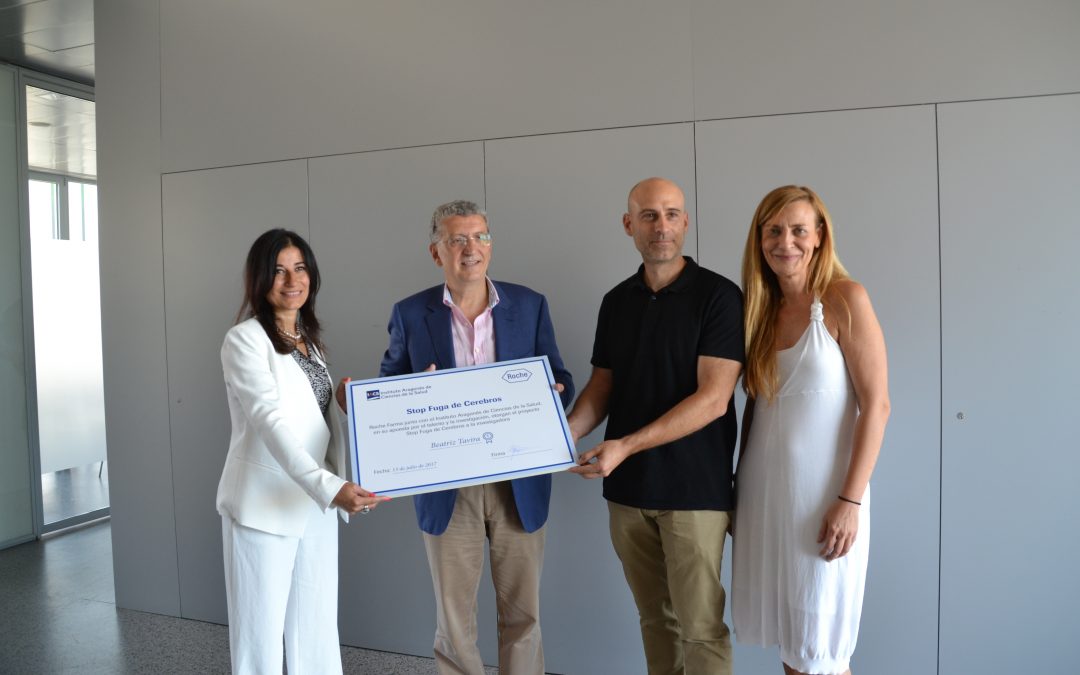 El consejero de Sanidad, Sebastián Celaya, ha sido el encargado de entregar el contrato de investigación Stop Fuga de Cerebros a Arbonés, quien ha recogido el mismo en nombre de Tavira. La entrega del contrato ha sido el colofón de una jornada organizada por el IACS y en la que se han puesto sobre la mesa distintos modelos de proyección profesional para los investigadores en Aragón y en España.